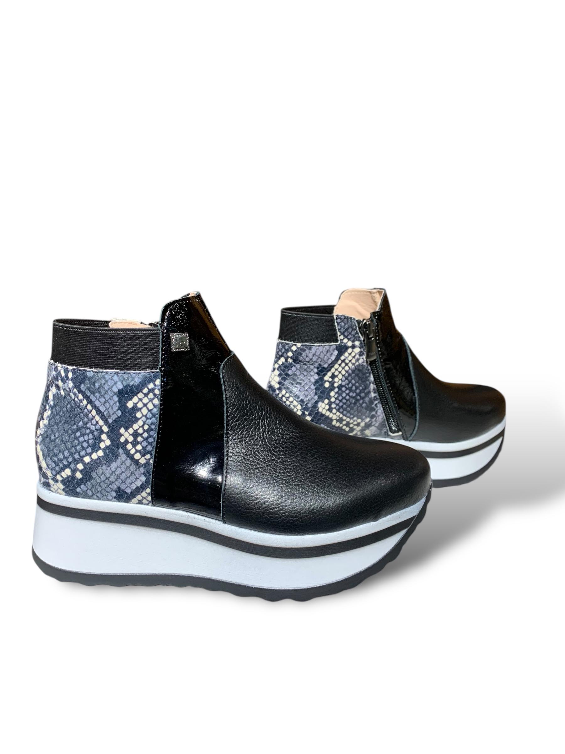 BOTIN DE CUERO EN COLOR NEGRO, CHAROL Y ANIMAL PRINT.