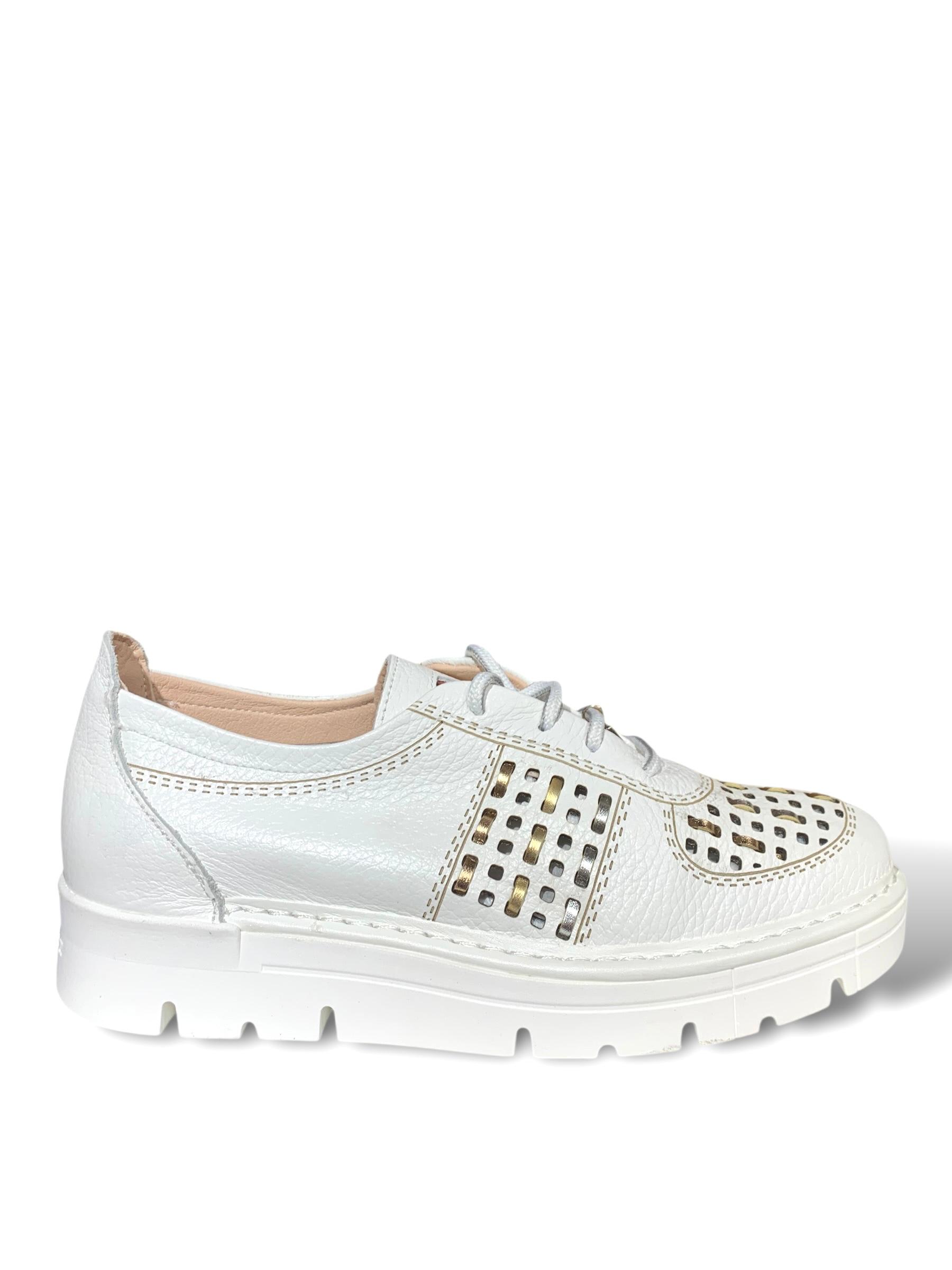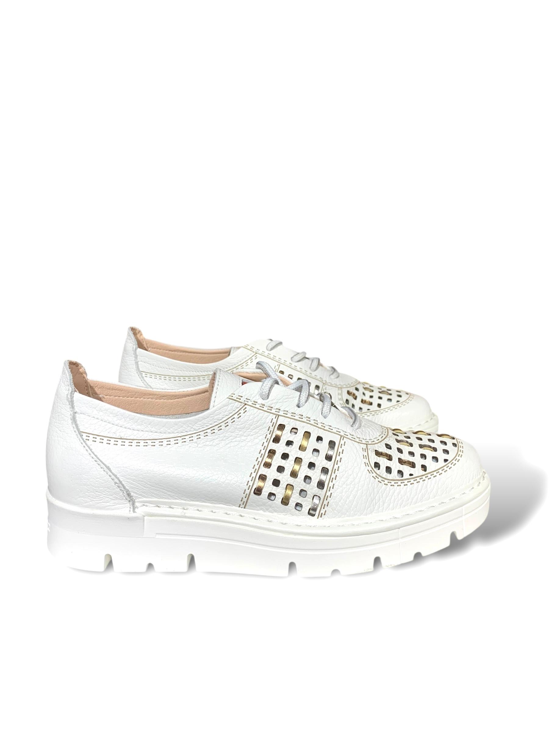 CALZADO DEPORTIVO EN CUERO COLOR BLANCO.