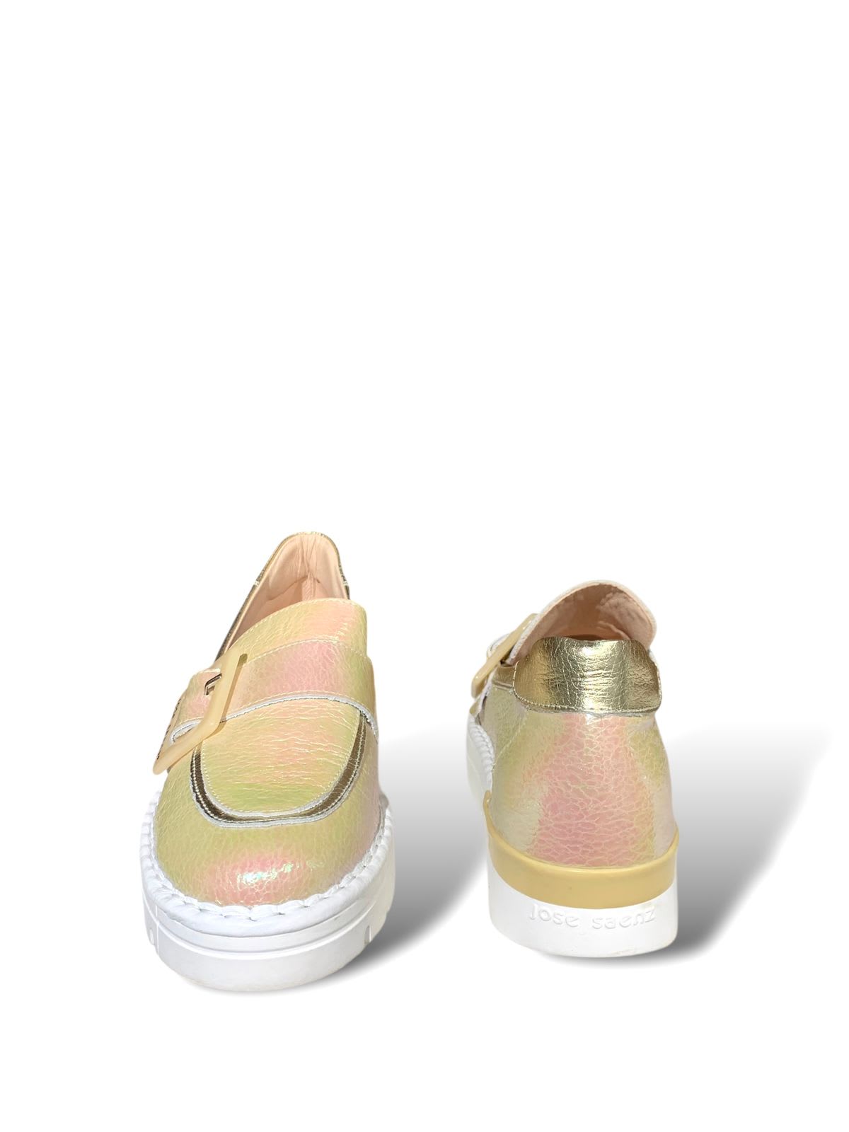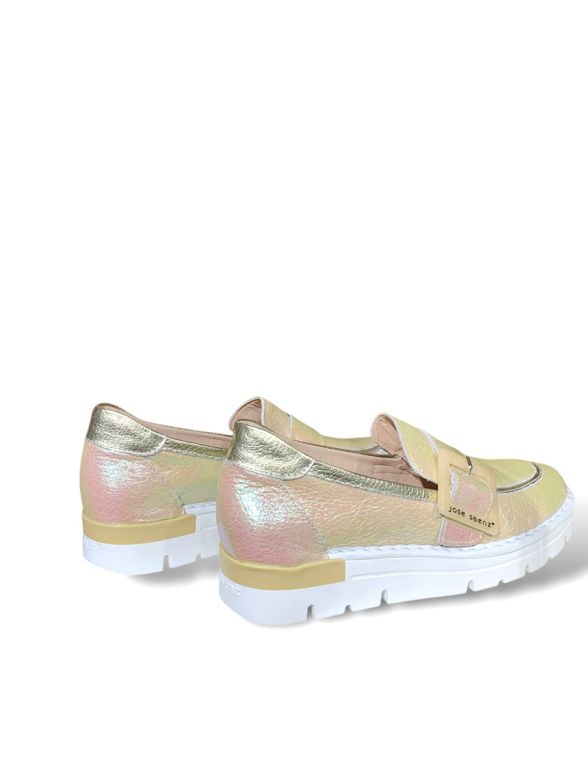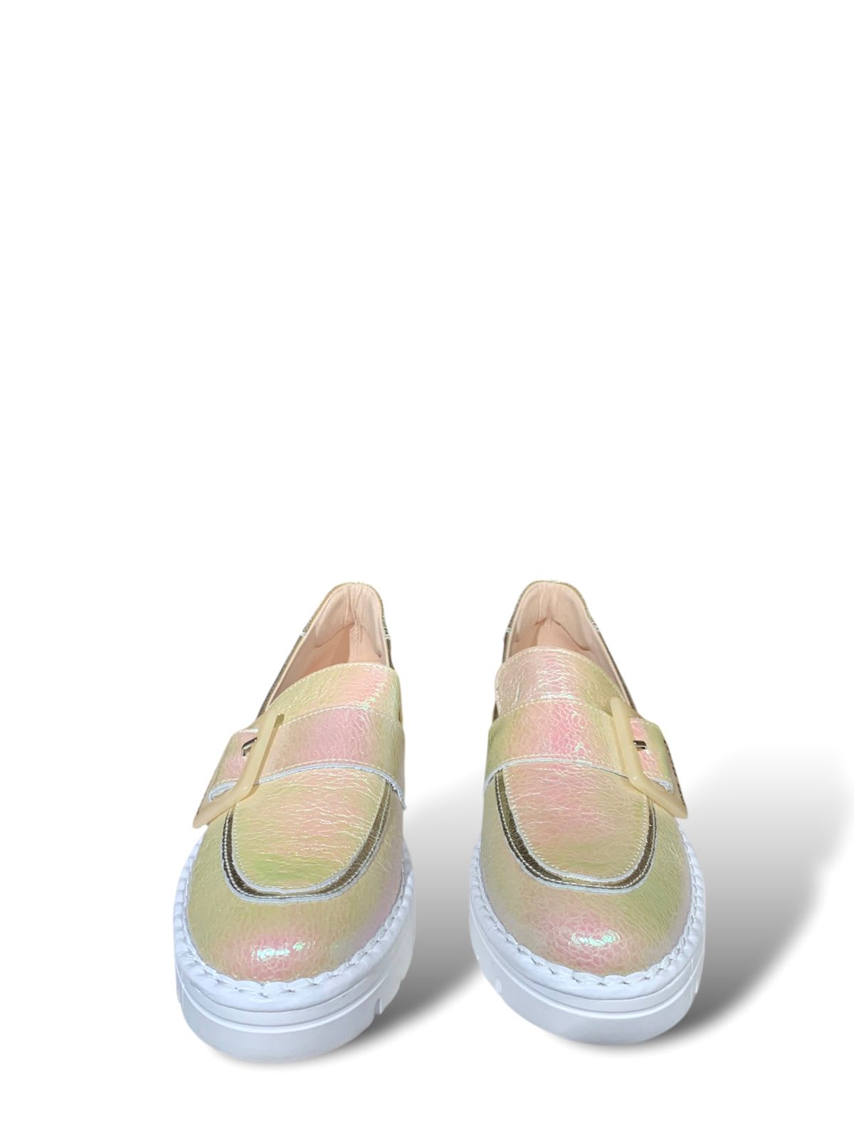 MOCASIN DE CUERO, EN COLOR BEIGE TORNASOL.