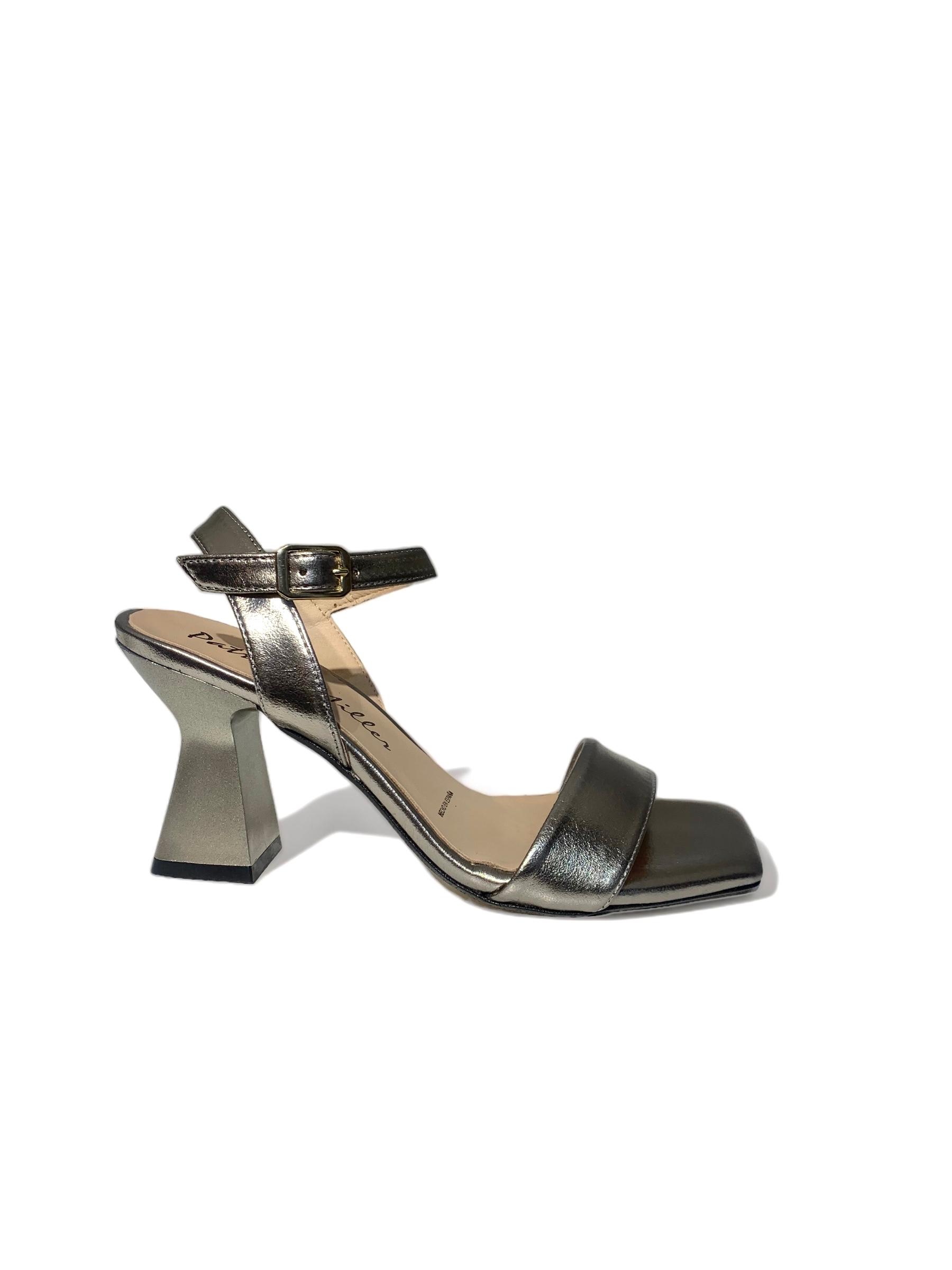 Sandalia de cuero en color metalizado.